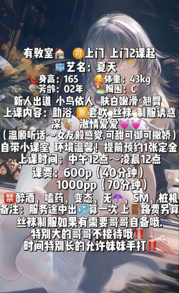 、保证金、照片验证、视频验证等任何提前付费的行为;以及引导下载APP,千万不要上当。同时也请注意仙人跳,在寻欢前不要露富和带过于贵重随身物品。本站只提供整合信息平台并不对寻欢经历负责,被骗一概与本站无关。信息真假请自行甄别,碰到有问题的信息,请及时举报给我们删除信息。