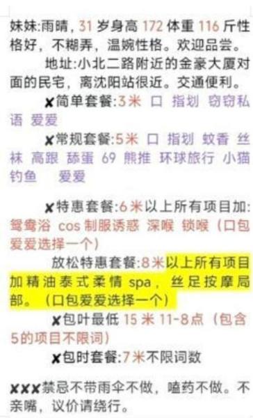 消费水平:300 包夜